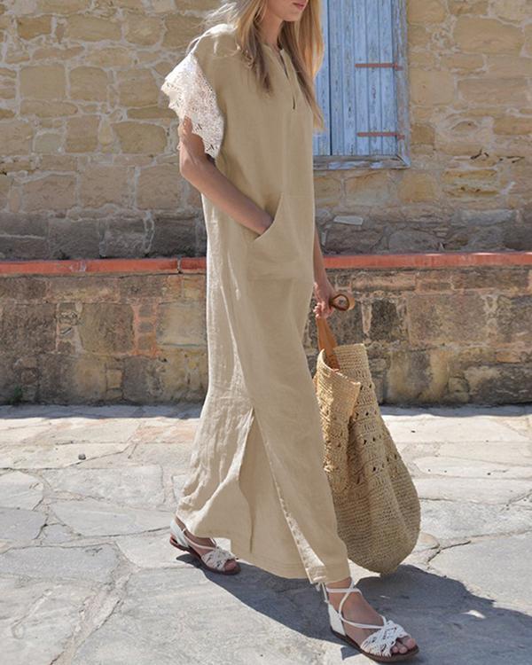 Item ID: H1477DescriptionMaterial: Cotton, LinenSeason: Spring,SummerSleeves: Short SleevePattern: Solid, LaceStyle: Casual, VacationColor: Beige, GrayPackage included:1 * Dress