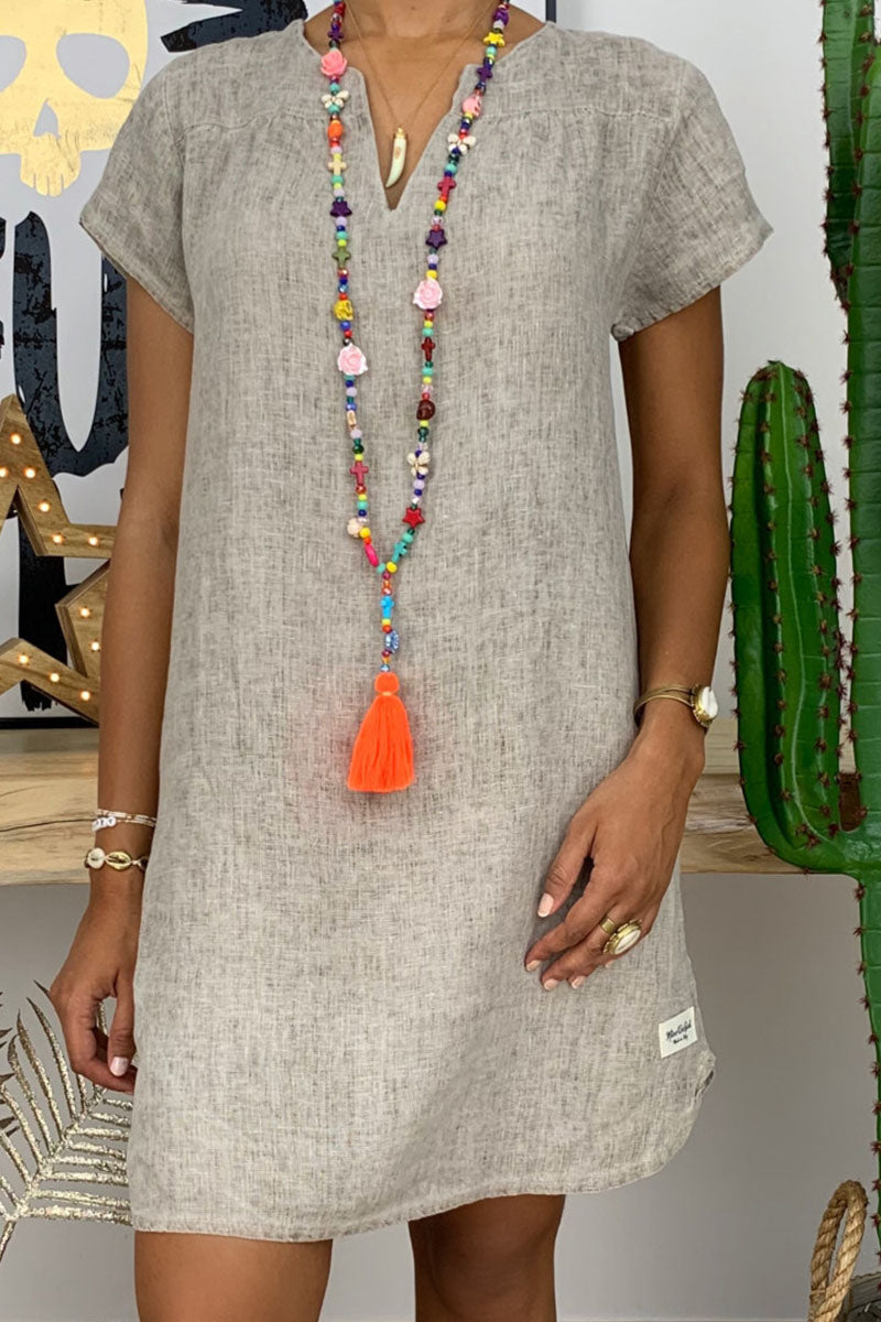 • Fashion Casual Solid Patchwork V Neck Lantern Skirt Dresses(8 Colors)