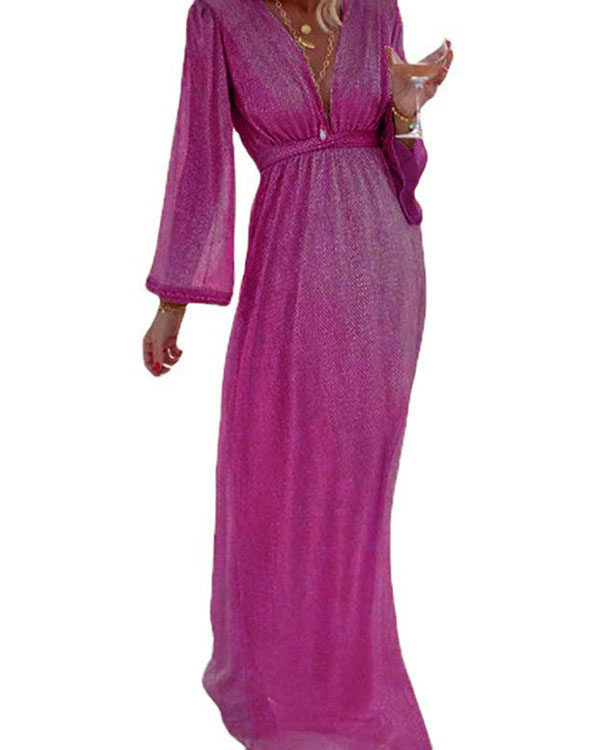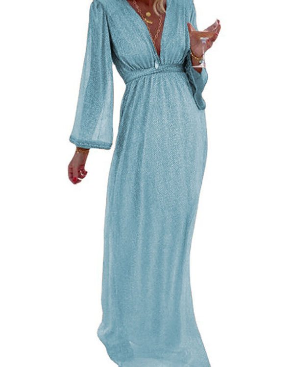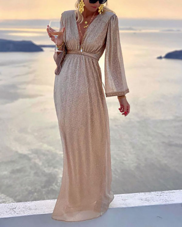 • Party Commuter V-Neck Long Sleeve Sequin Dress