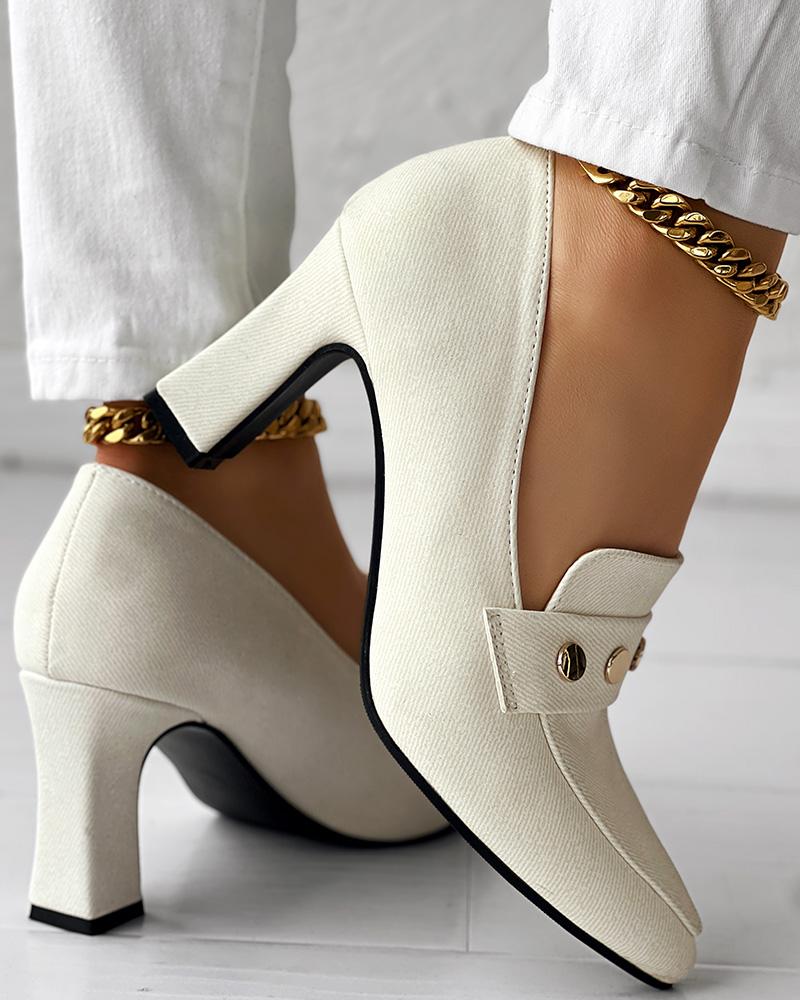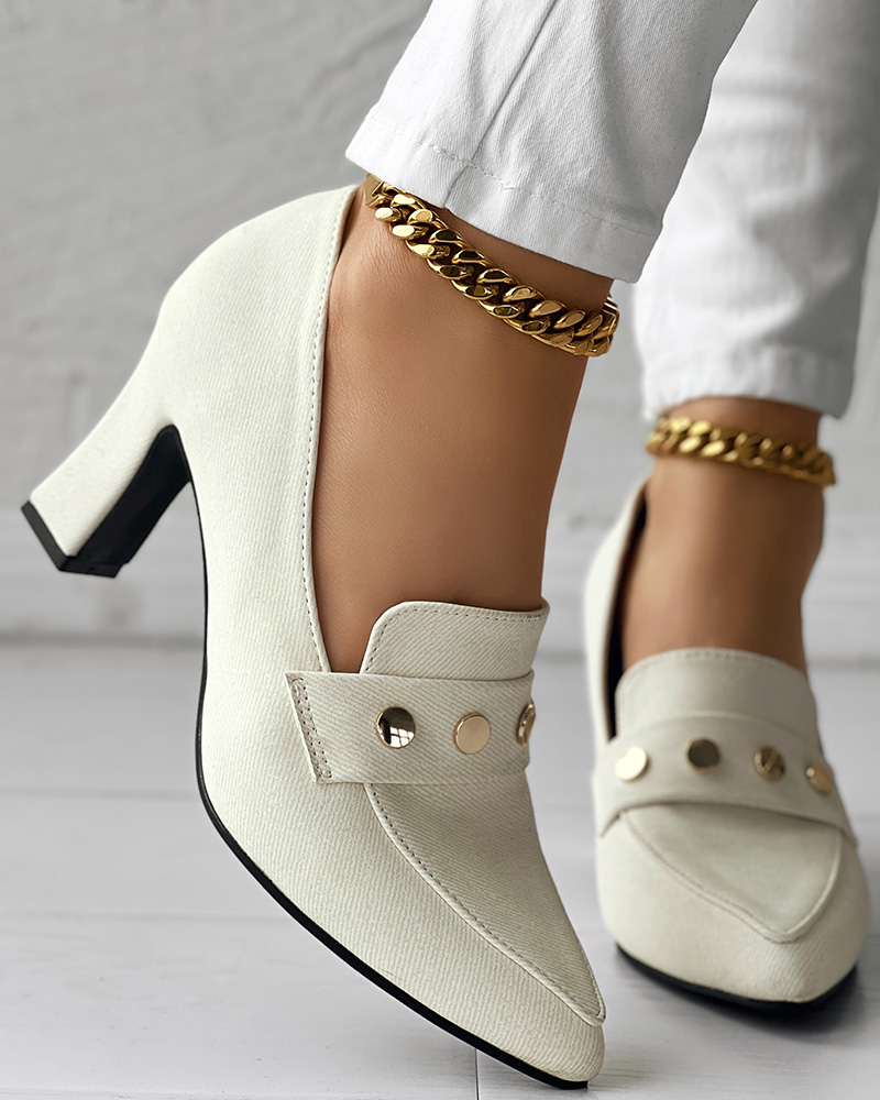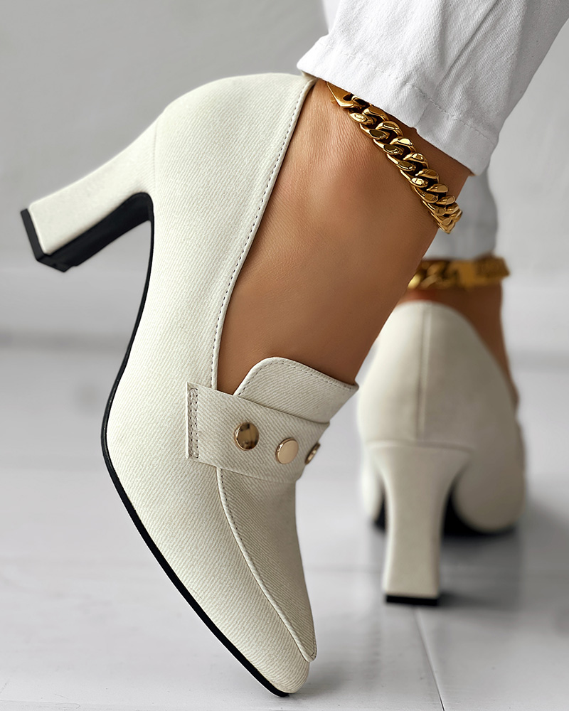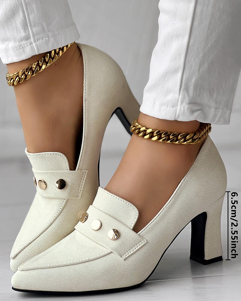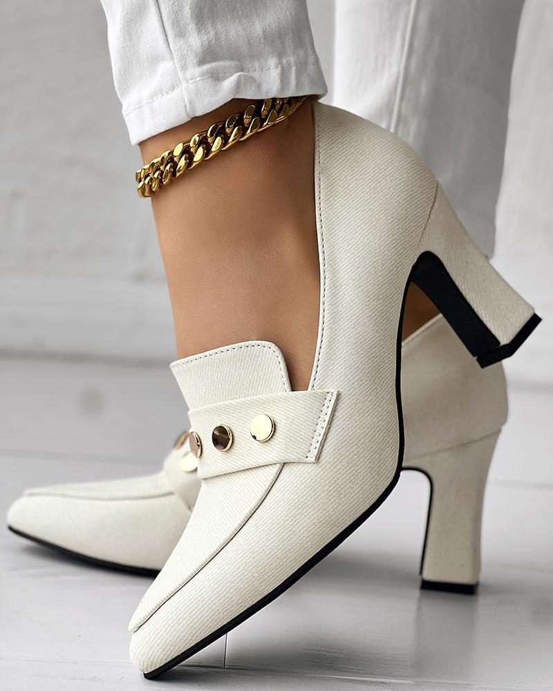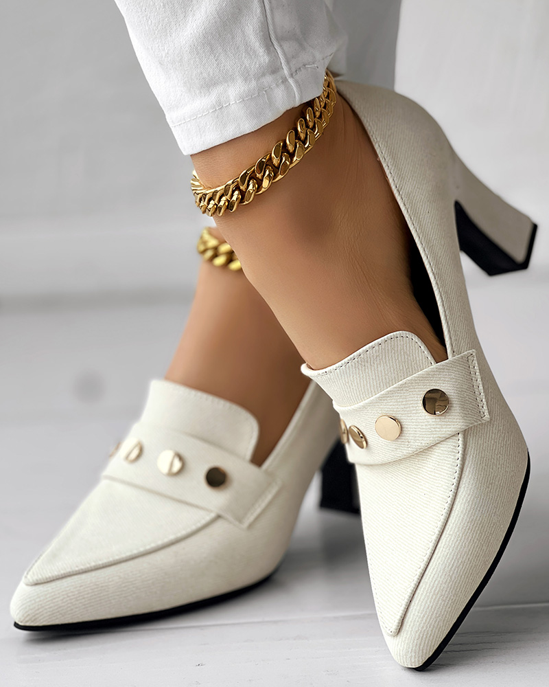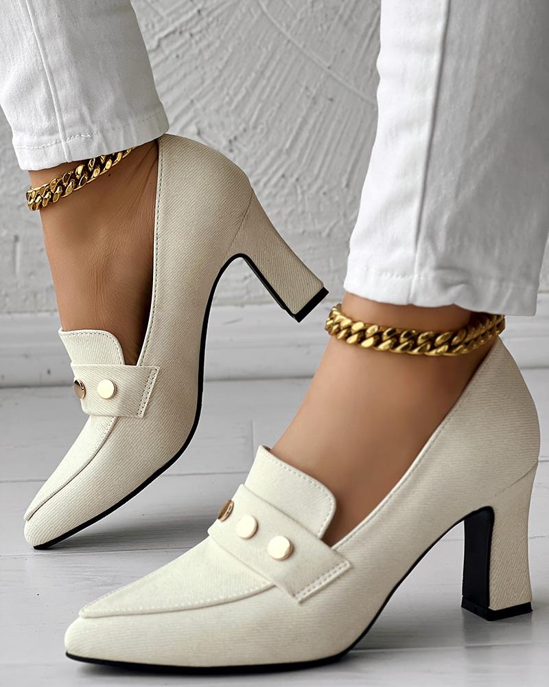 Geometric Pattern Point Toe Chunky Heel Pumps