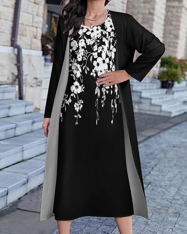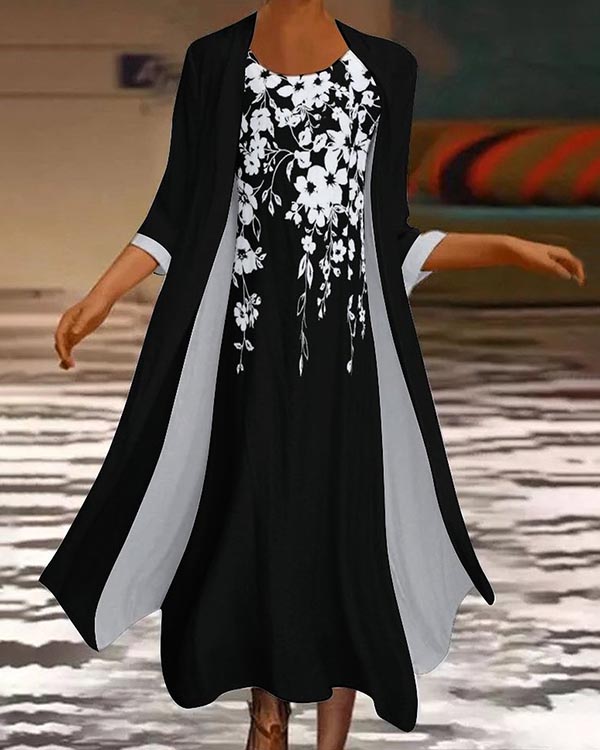• Floral Casual Short-Sleeve Woven Two-Piece Dress